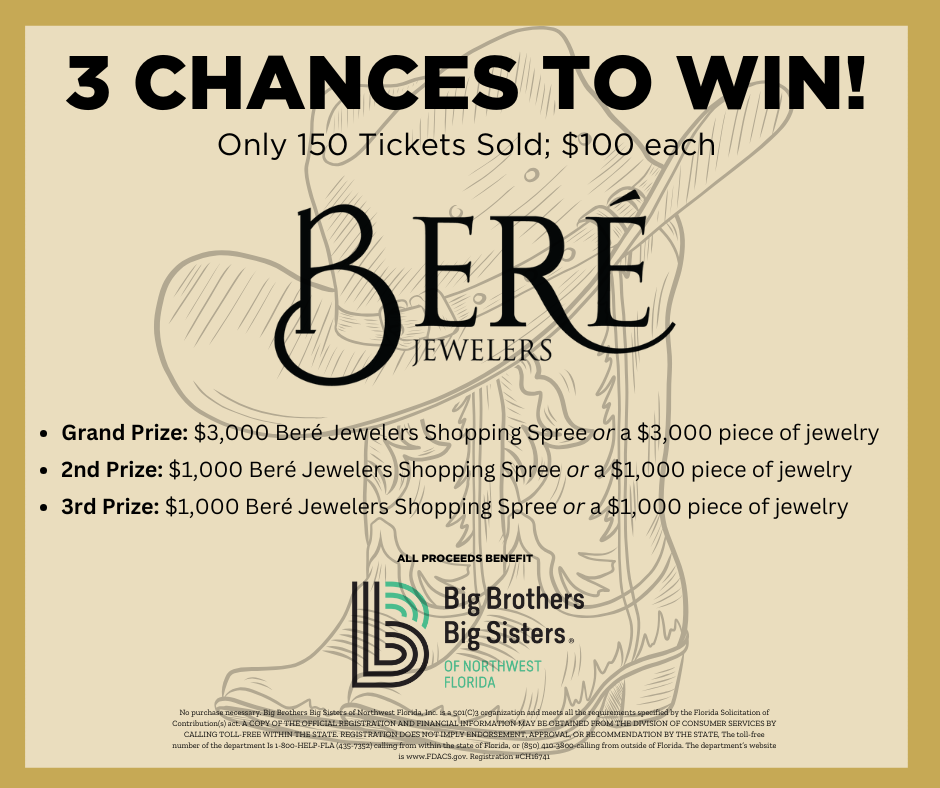 We are thrilled to announce our 2026 Big Gala - Little Boots, Big Dreams, presented by DR Horton Homes, will be held on February 28, 2026, at The Sanctuary (716 N. 9th Avenue, Pensacola, FL). We are so excited to have James "Rock" & Jessica Rockhill serving as our Honorary Chairs, lending their leadership and passion to make The Big Gala an unforgettable evening. The evening will begin at 5:30 PM and promises to be a night filled with western glam, wild suprises, and entertainment by Grammy-nominated country duo Thompson Square - all while celebrating community, impact, and inspiration. Each year, The Big Gala provides an opportunity for community leaders, partners, and supporters to make a lasting difference. By partnering with us, you are not only showcasing your commitment to strengthening our community but also helping ensure that every child has the chance to reach their fullest potential. Contact our President & CEO, Paula Shell at pshell@bbbsnwfl.org for details about Sponsorship Opportunities.